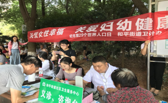 2018年7月11日是第29个世界人口日,上午,和平街道以 “关心女性幸福,关爱妇幼健康”为主题在杉山社区公园开展了7·11宣传活动。