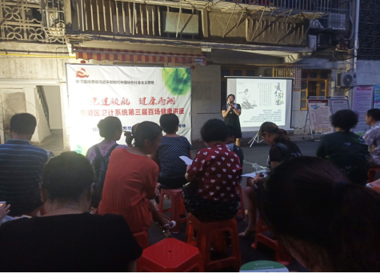 7月16日晚上,雨湖区卫计系统第三届百场健康讲座开讲啦。今年的主题是“党建领航、健康雨湖”。受雨湖街道卫生服务中心邀请,市中医医院健教科负责人作为百场讲座开场主讲嘉宾,主讲“夏季中医养生”。